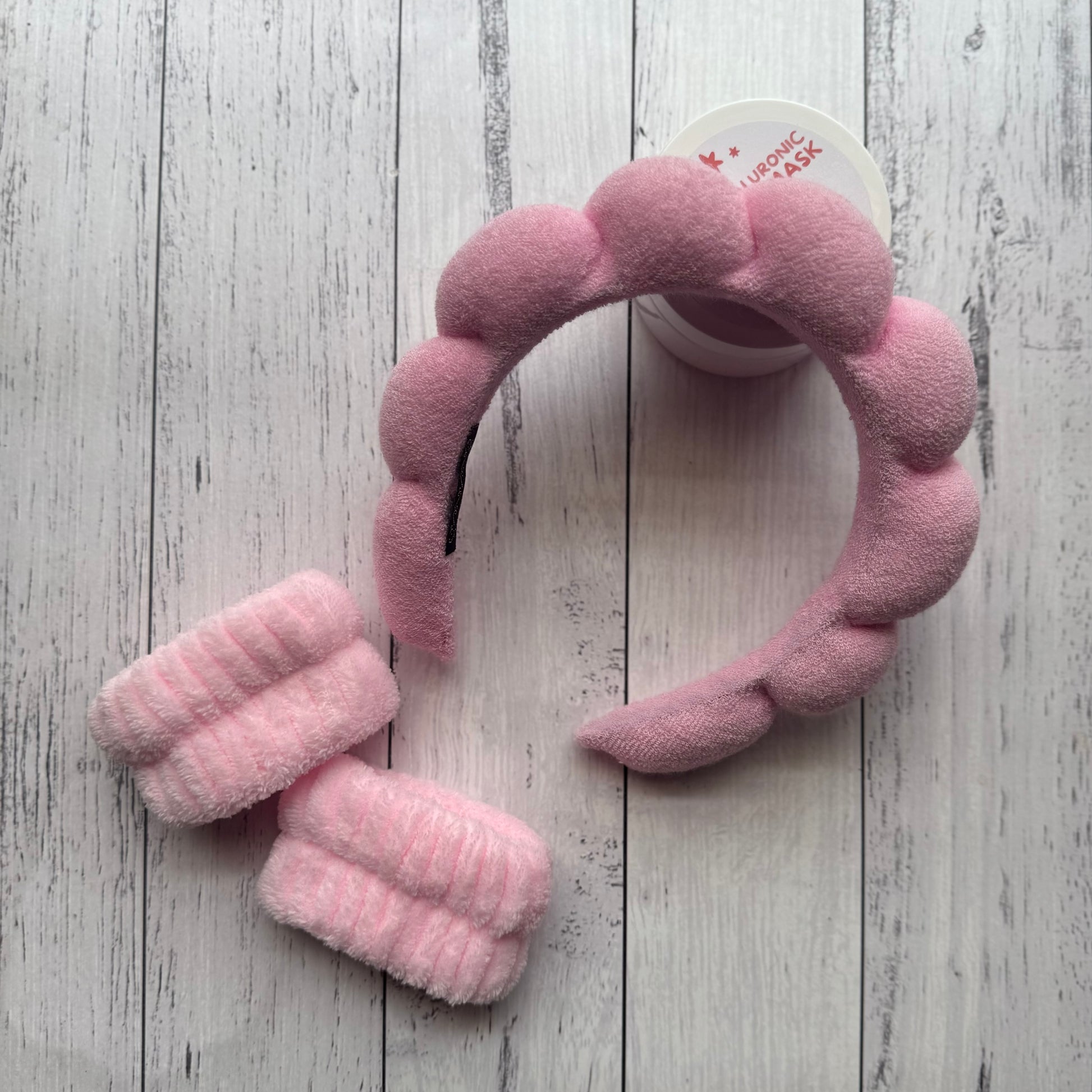 Enhance your beauty routine with our pink makeup headband and wristband set. Keep your hair and sweat away while applying makeup or doing a face mask, thanks to the soft and absorbent fabric. Achieve a flawless look every time with this must-have set for all makeup enthusiasts.
